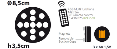 Ognuna contiene 13 led RGB superluminosi e funziona a batteria (3 pile AA non incluse).