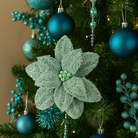 Il fiore decorativo natalizio con stelo, alto 50 cm, è una decorazione sofisticata e versatile, ideale per arricchire qualsiasi composizione natalizia con un tocco di eleganza e freschezza.