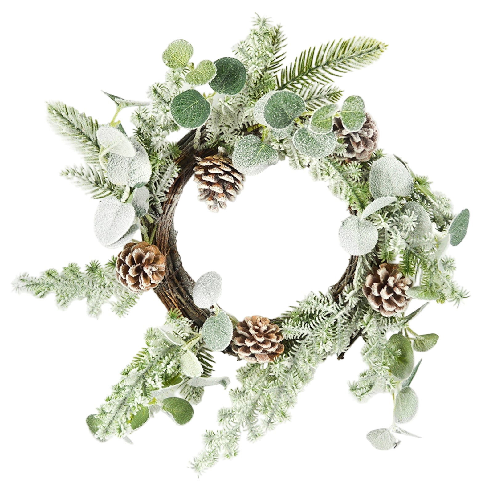 Ghirlanda tonda corona dietro porta con foglie e pigne PE effetto Real Touch Ø 50 cm