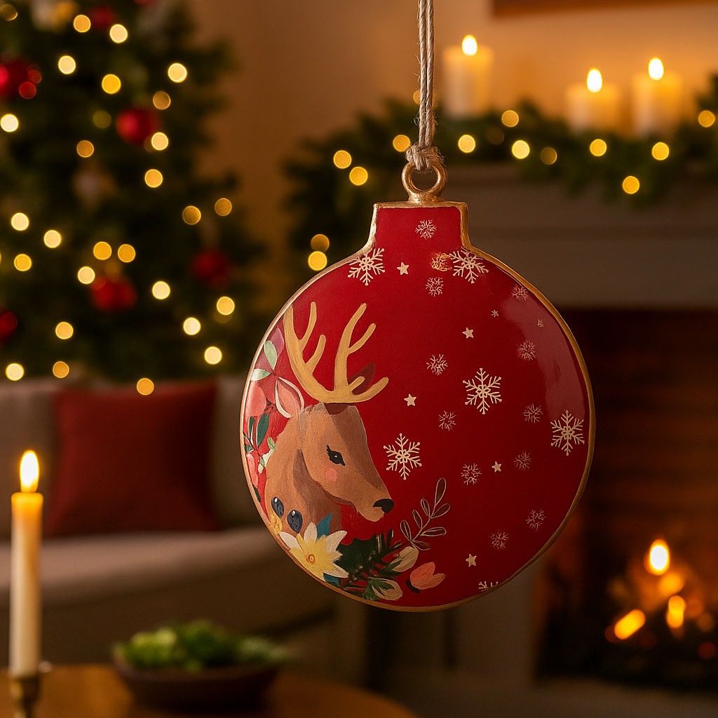 Pendaglio con Renna in Sfera "Sharlen" natalizio Marrone e Rosso h 12 cm