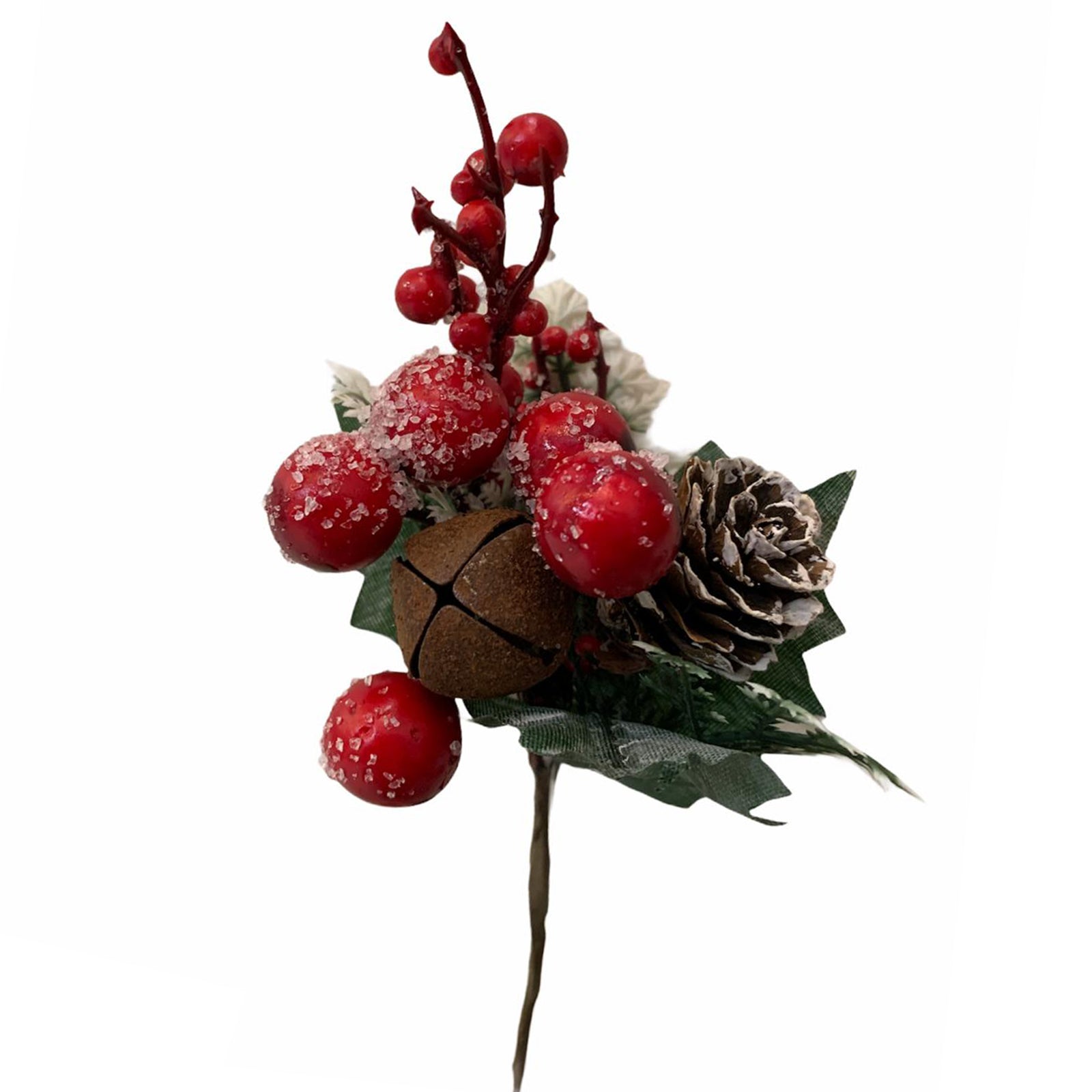 Spillone chiudi pacco con bacche rosse addobbi per Alberi e Ghirlande natalizie 12 pezzi