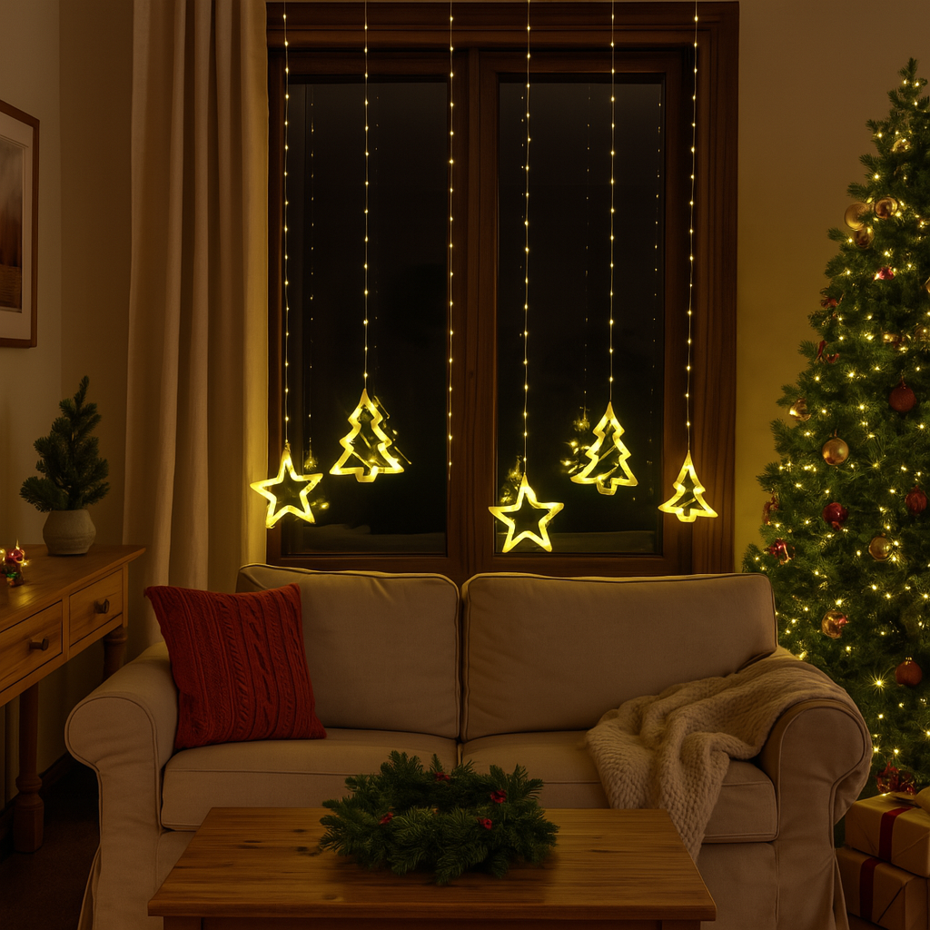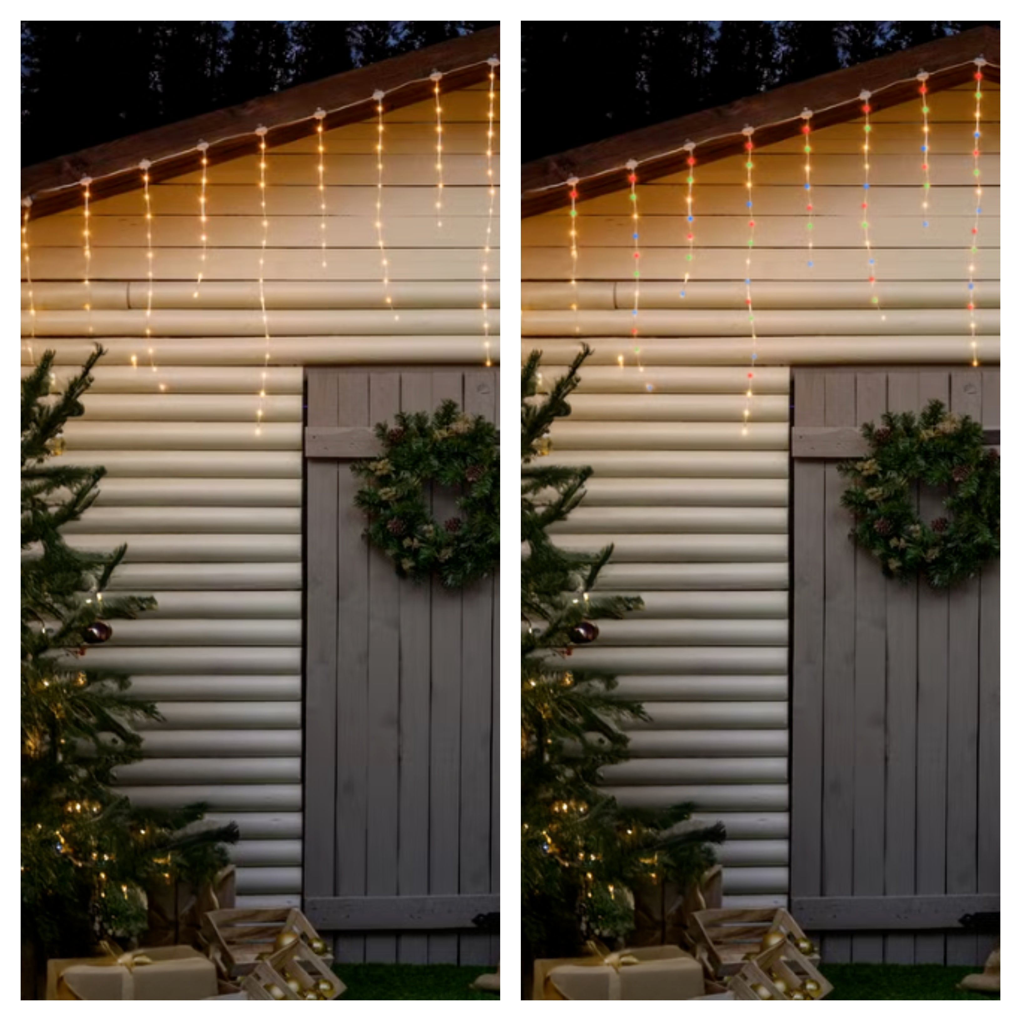 Inoltre è compatibile con altre tende e catene luminose della stessa serie a bassa tensione, che possono quindi essere unite tra loro.