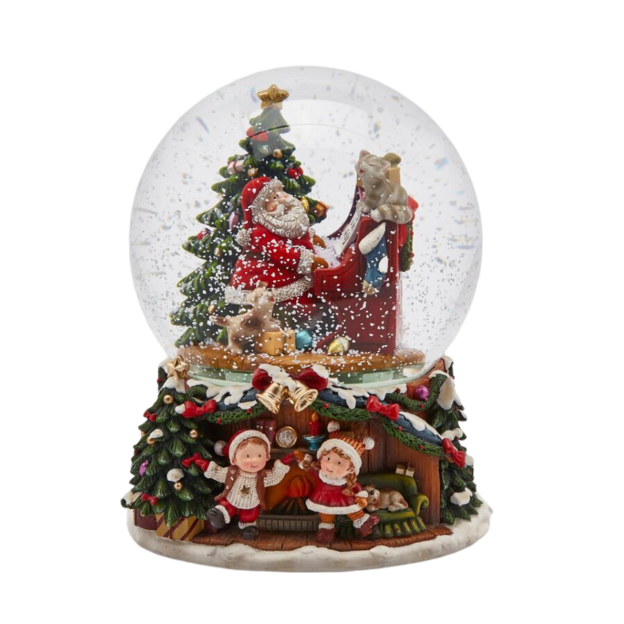 Sfera di cristallo natalizia con Babbo Natale con piano, decorazione per interno h 21 cm
