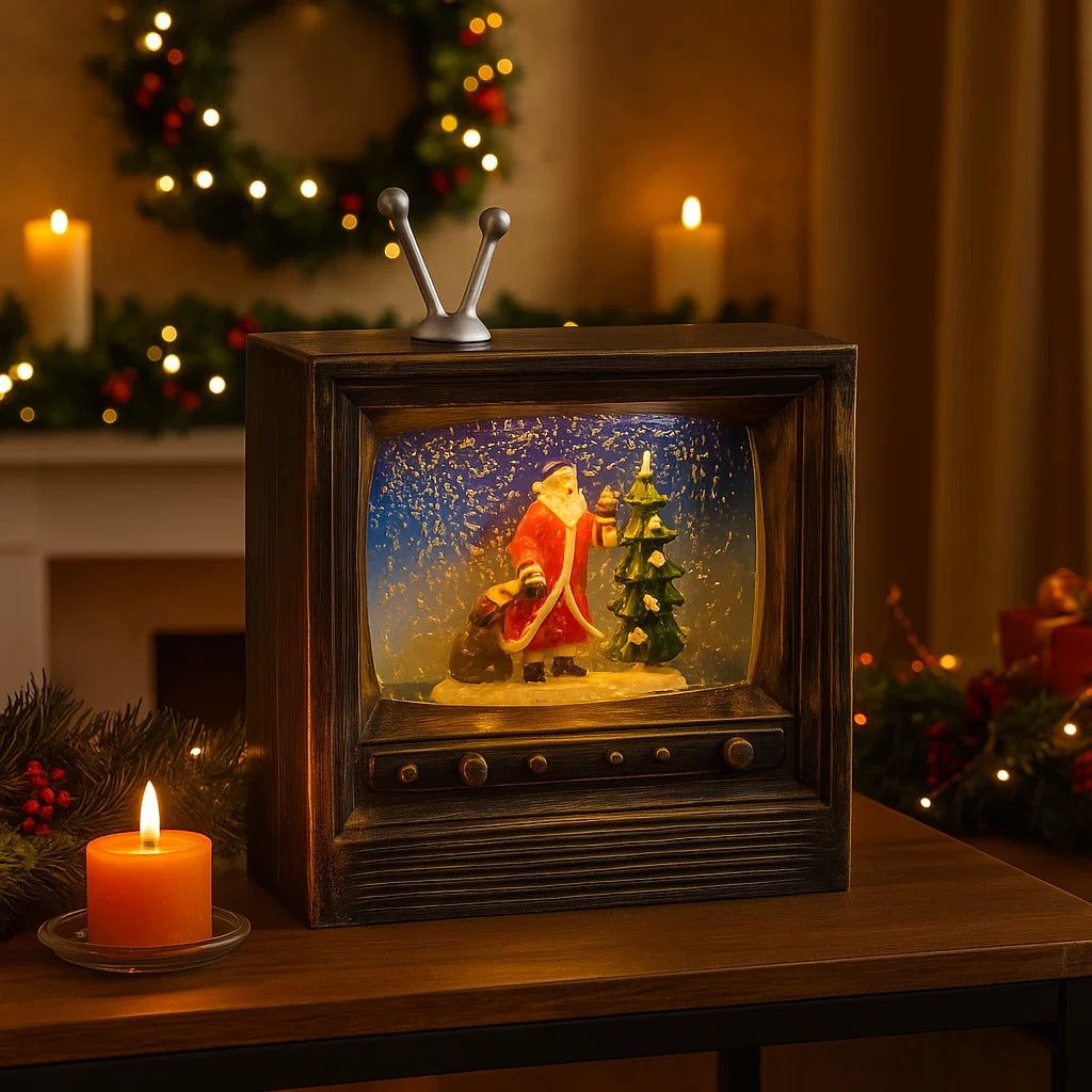 Palla di neve "Televisione" natalizia con babbo natale a led h 22 cm