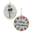 Medaglione Tamburello rotondo con ricamo per addobbi natalizi da appendere, diametro 22 cm