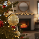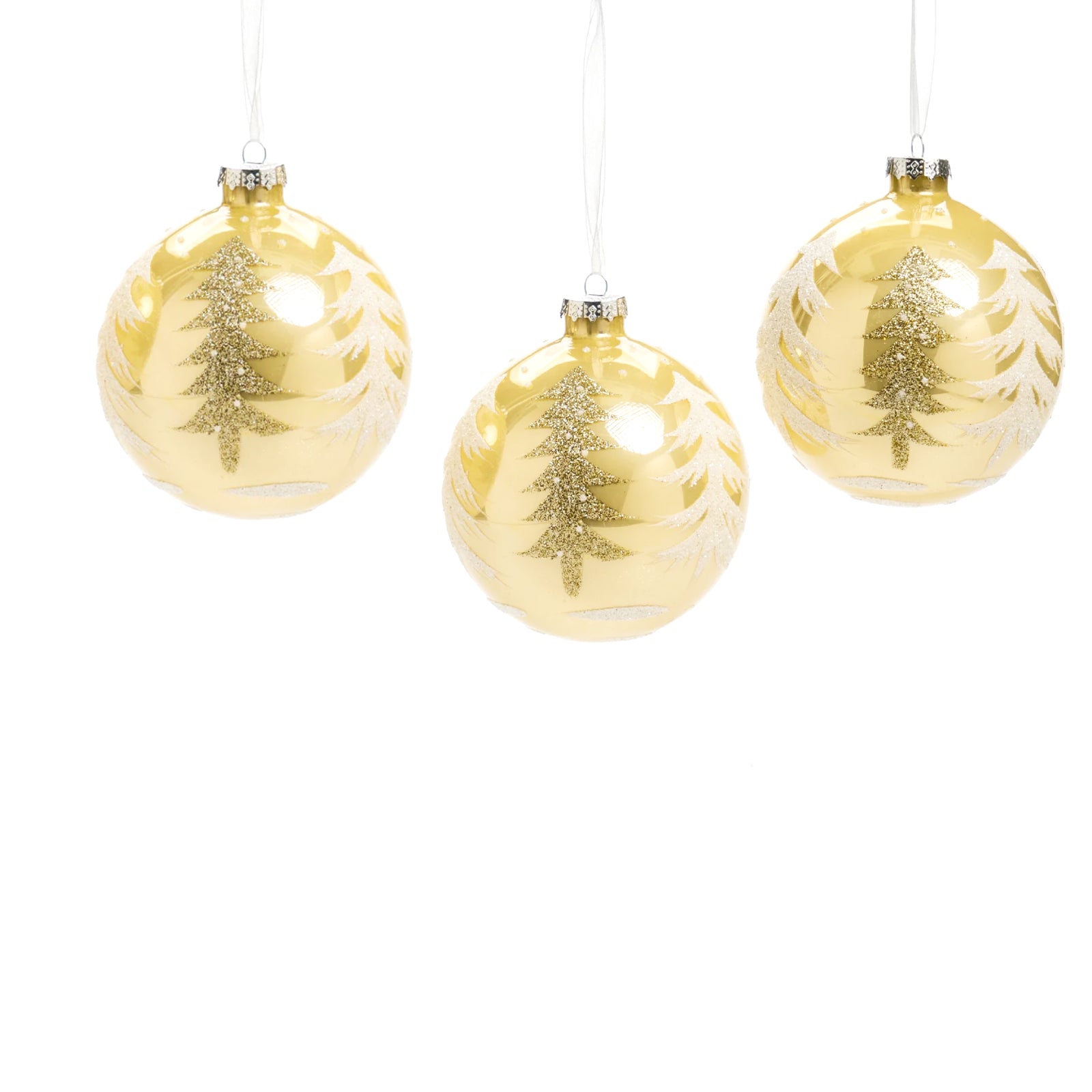 Pallina in vetro colore oro con alberi glitterati per albero di Natale