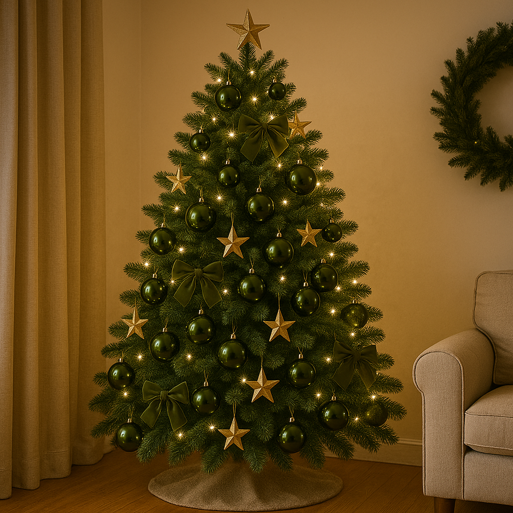 Perfetta da abbinare con palline rosse, dorate o champagne per un albero tradizionale e caldo, oppure con dettagli bianchi e naturali per un look più rustico e delicato