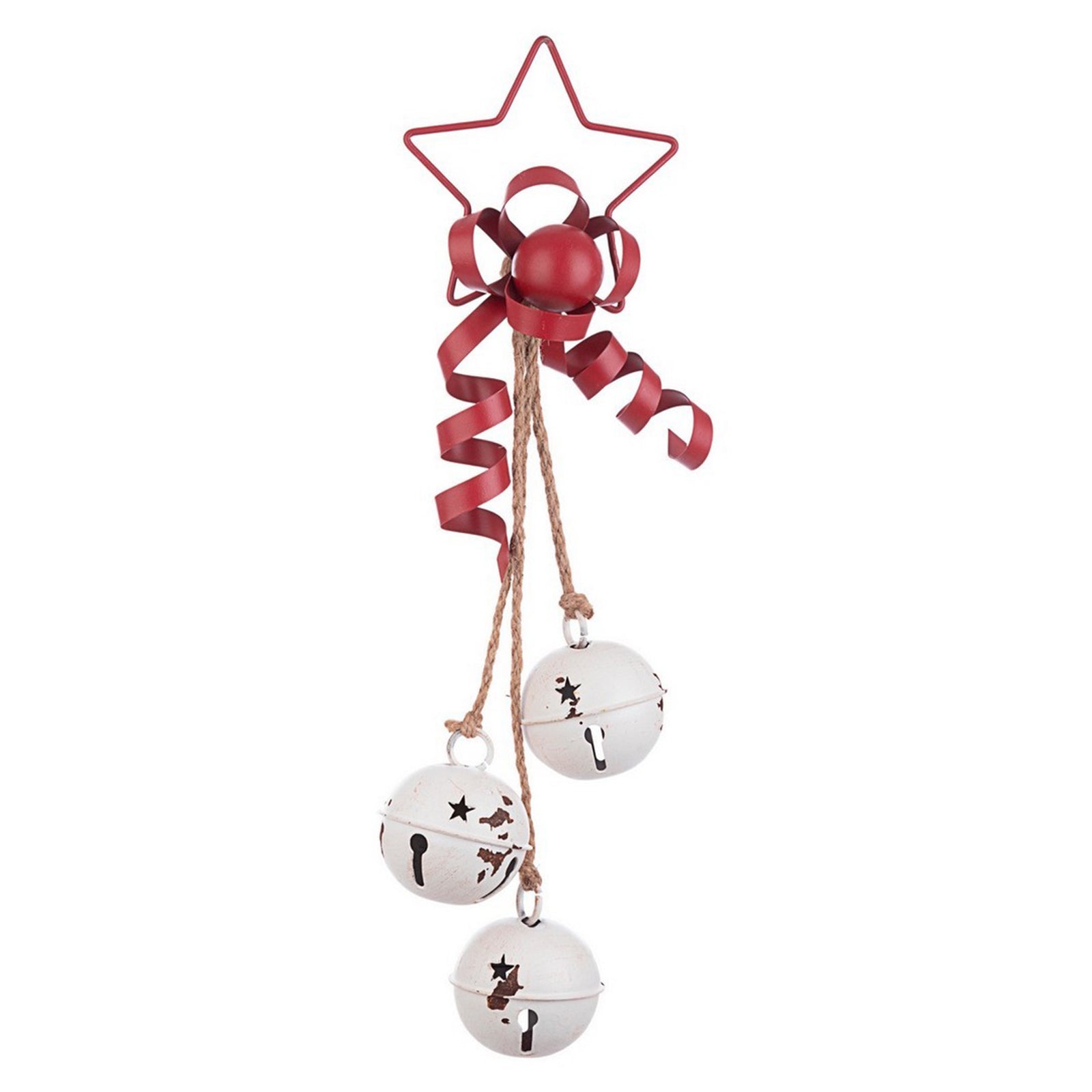 Stella con Nastro e Campanellini Pendaglio natalizio Bianco e Rosso h 48 cm