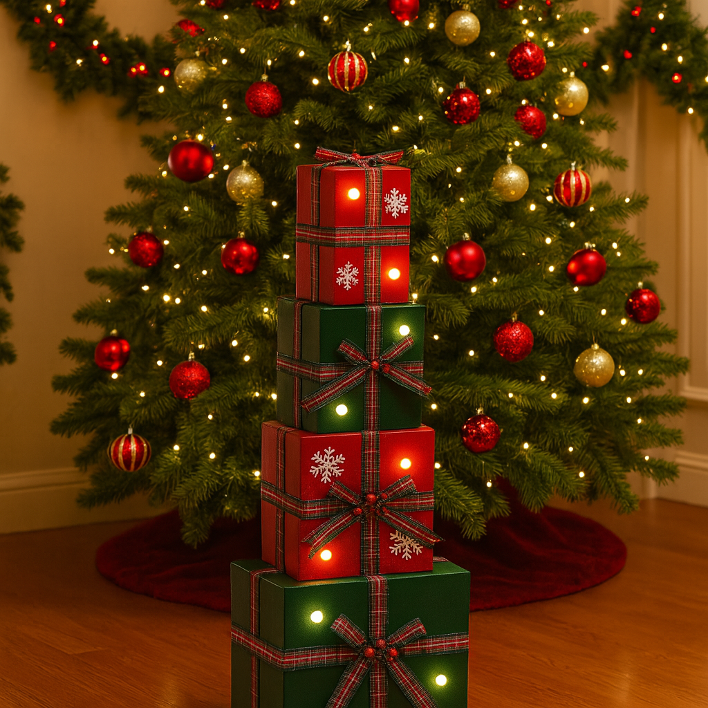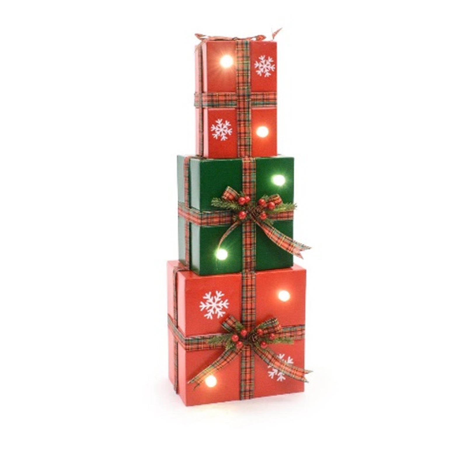 Composizione regali di natale in metallo con luci a batteria per decorazioni natalizie