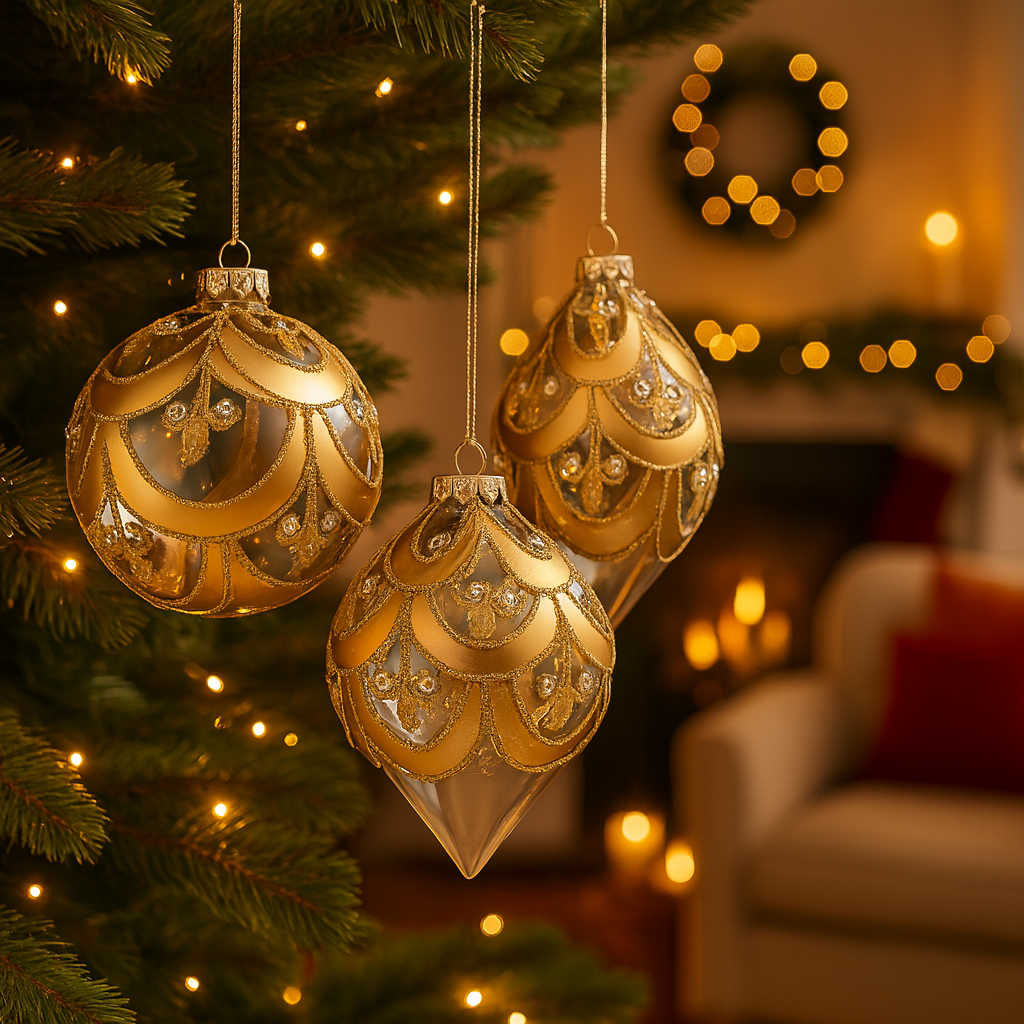 Pallina in vetro colore bianco e oro per albero di Natale, set da 3 pezzi