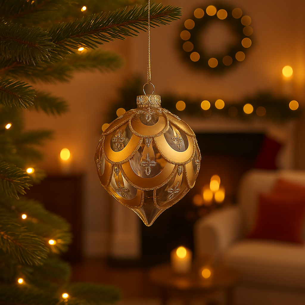 Pallina "Vortex" dorata e trasparente per decorazione natalizia dal diametro