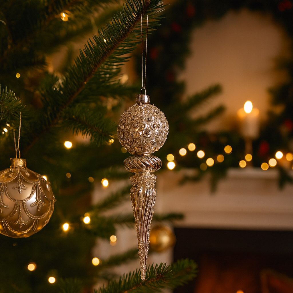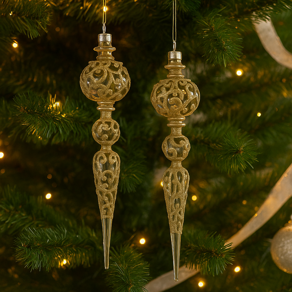 Pendaglio in vetro trasparente con decorazioni, addobbo natalizia per Albero di Natale, h 38 cm