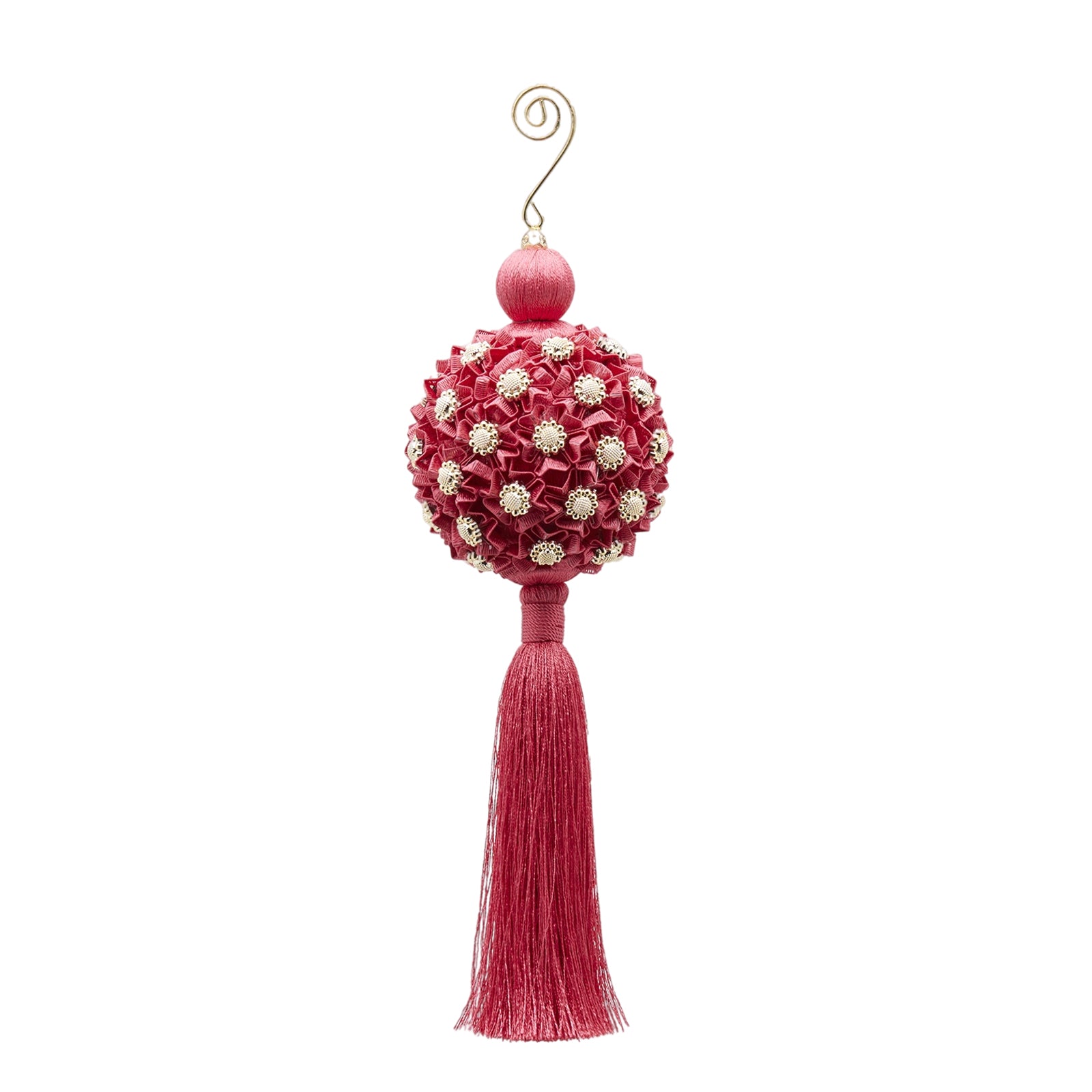 Nappa natalizia Fucsia decorata con Perle, pendaglio per albero di Natale da 28 cm