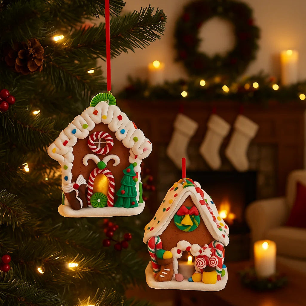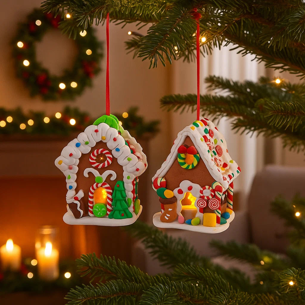 Palline a forma di casetta con led per albero decorazione natalizia, Set.2