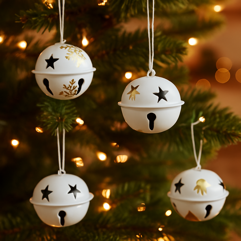 Palline a campanella natalizie in metallo Bianco e Oro da Ø 5 cm set da 6