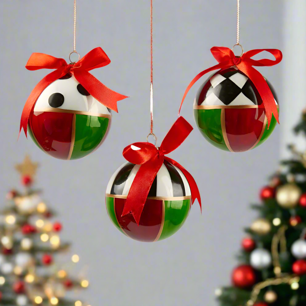 Palline per albero di natale colore verde e rosso decorazione natalizia, set da 3 pezzi