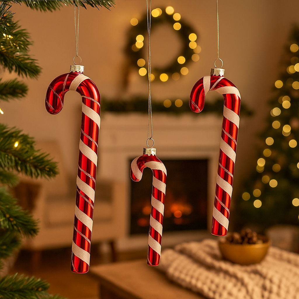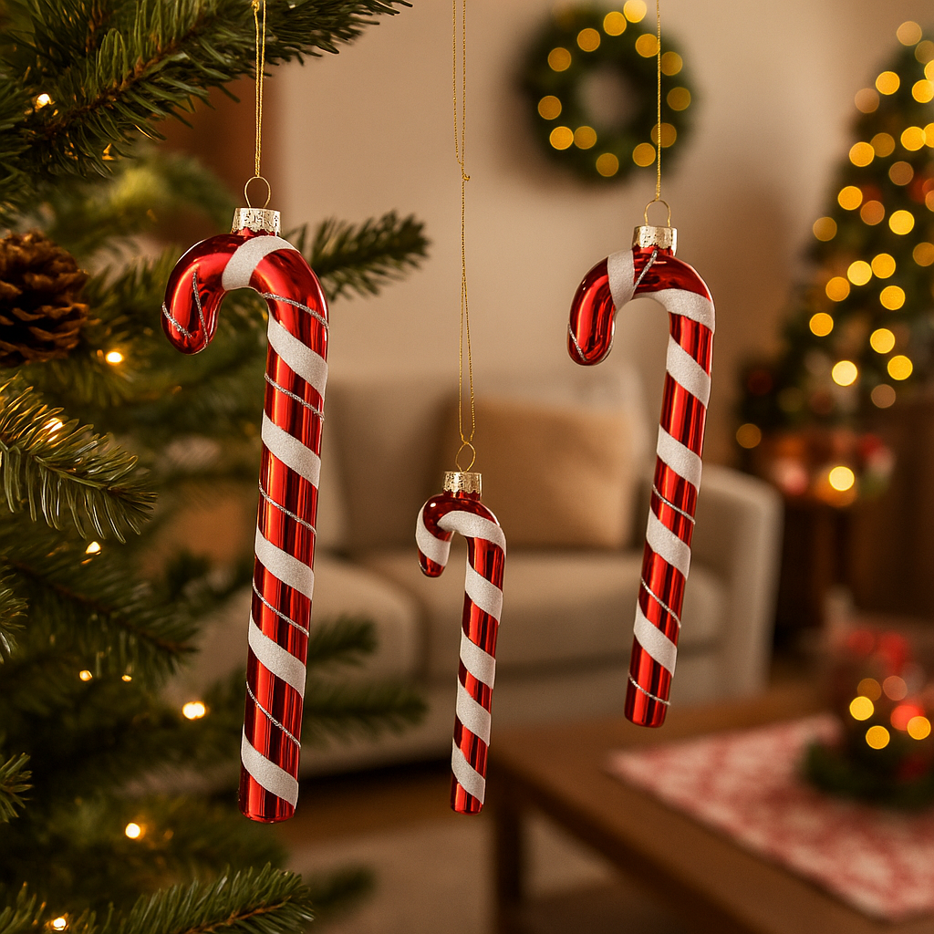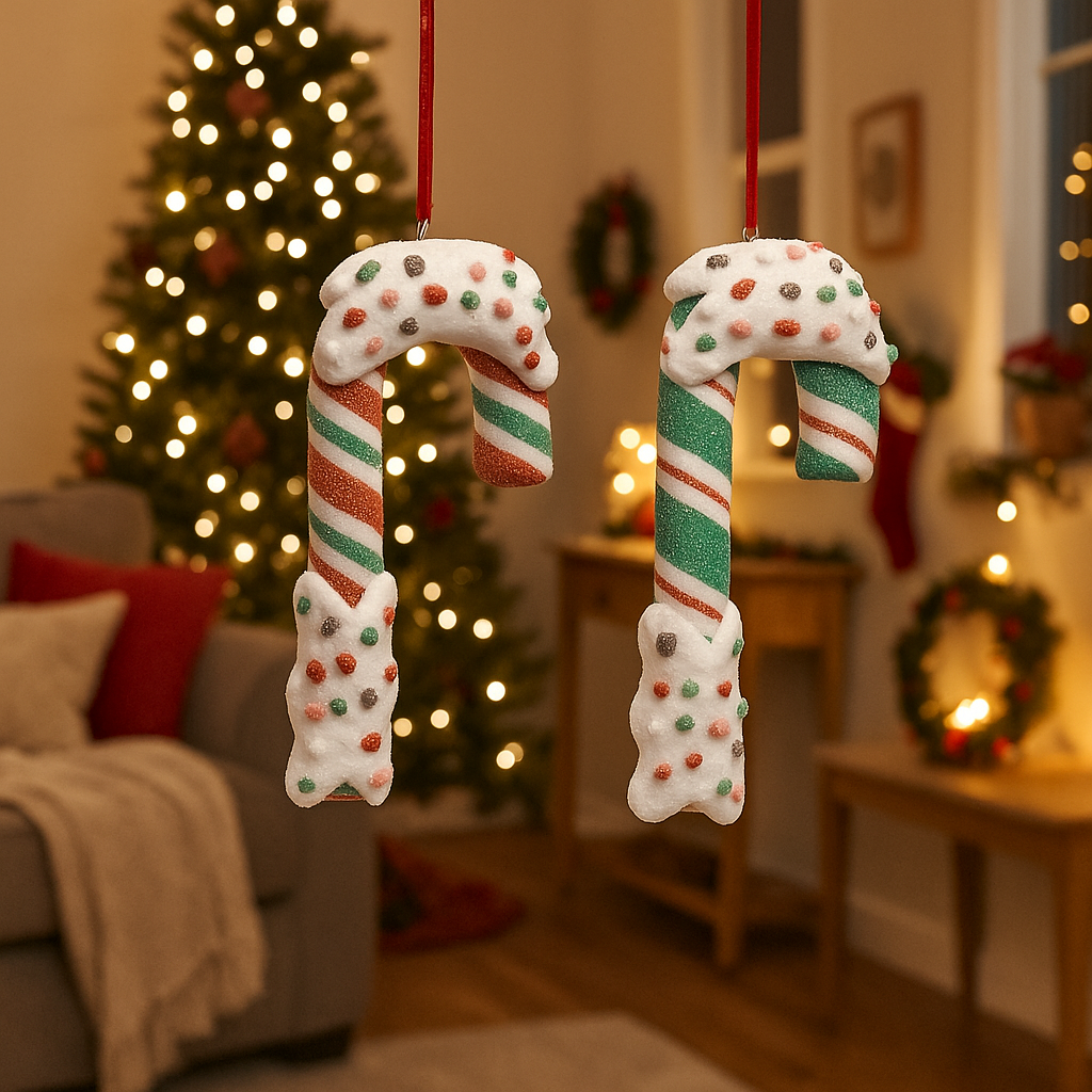 Un classico delle feste reinterpretato in versione soft: questo bastoncino di zucchero in tessuto, nei tradizionali colori verde e rosso, aggiunge subito un tocco giocoso e goloso all’albero di Natale, alle ghirlande o ai pacchi regalo. Leggero, morbido e facile da appendere, è perfetto per decorazioni rapide ma d’impatto.