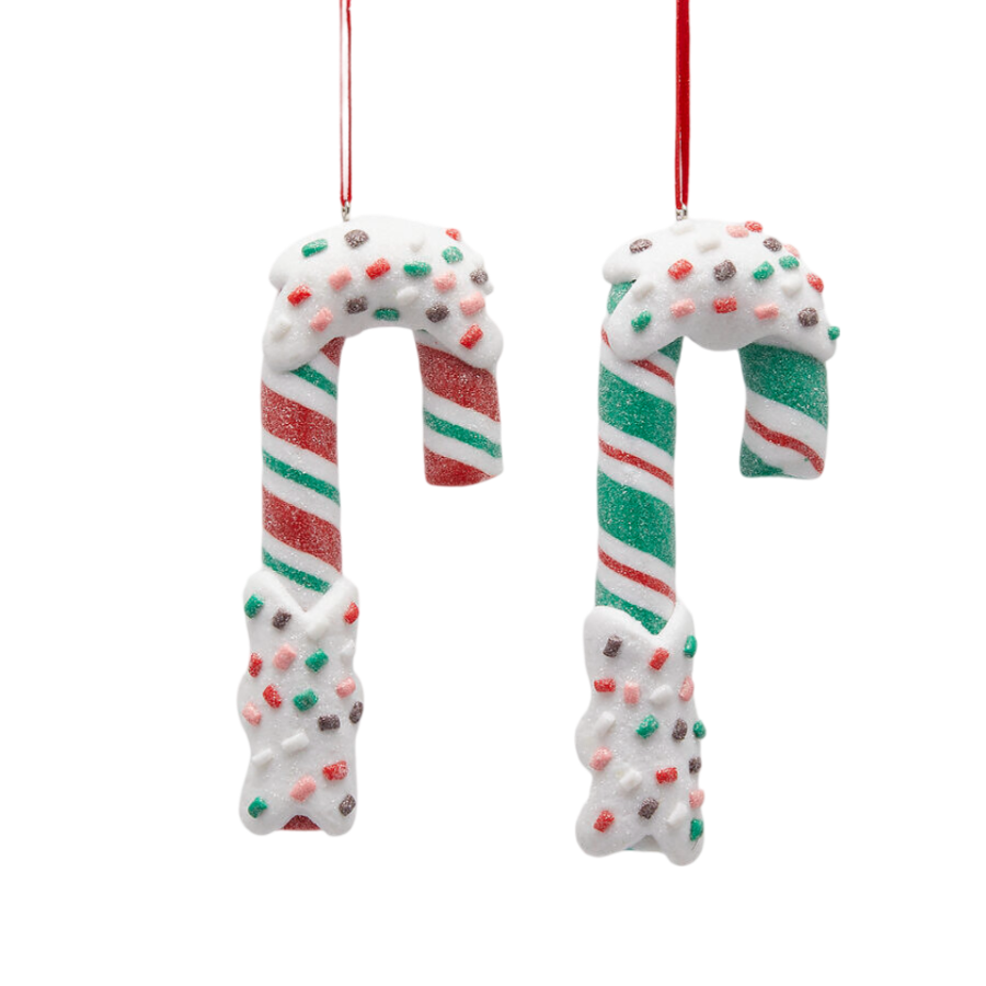 Bastone di zucchero verde e rosso in tessuto per decorazioni natalizie h 17,5 cm