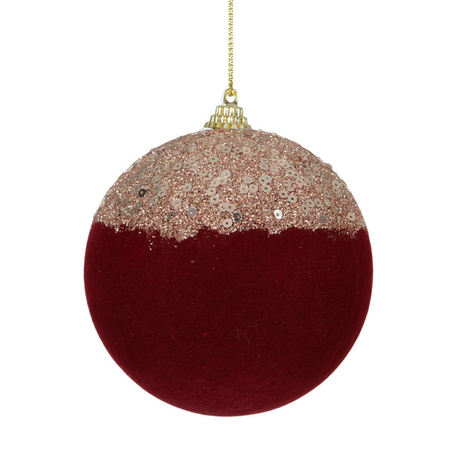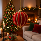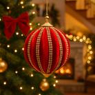 Pallina in velluto colore rosso con decori oro per albero di Natale decorazioni natalizie