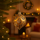 Pallina in vetro colore bianco e oro per albero di Natale, set da 3 pezzi