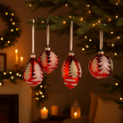 Palline in vetro colore rosso con alberi glitterati per albero di Natale, set da 4 pezzi
