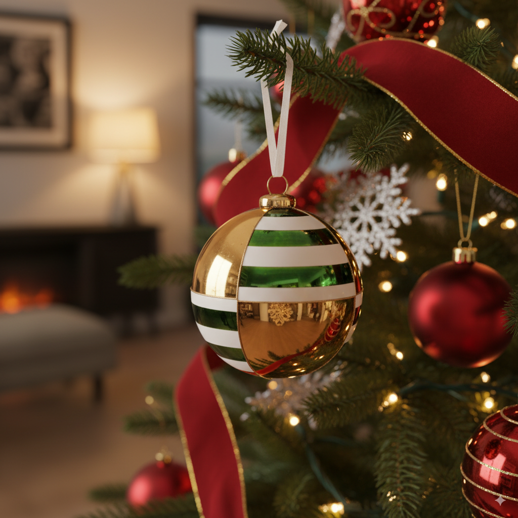 Pallina in vetro colore verde e bianco a fasce per albero di Natale
