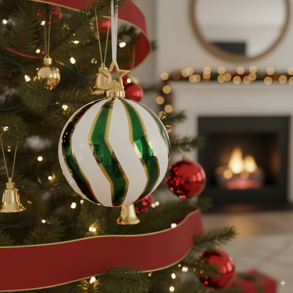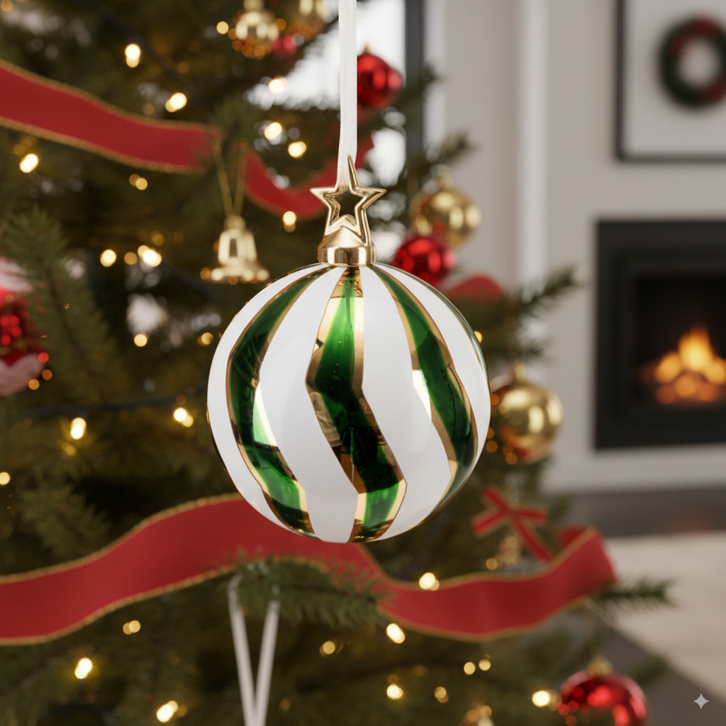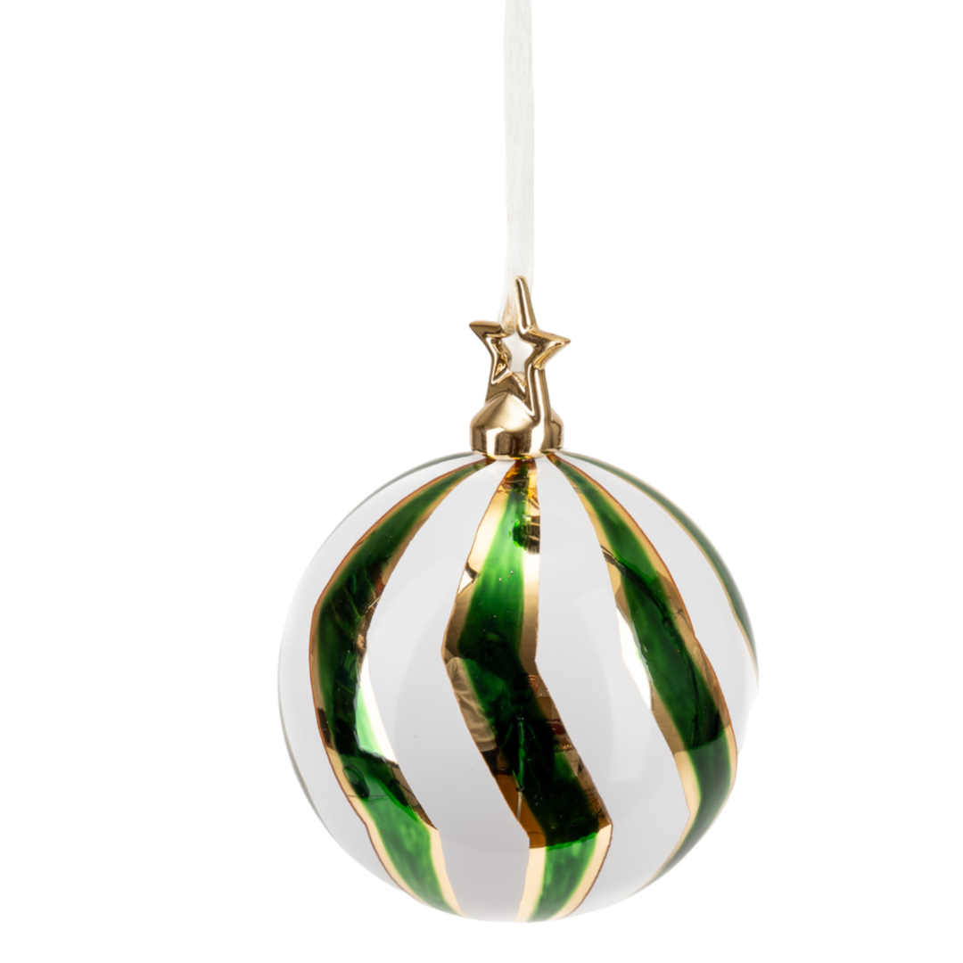 Pallina in vetro colore verde e bianco con stella per albero di Natale