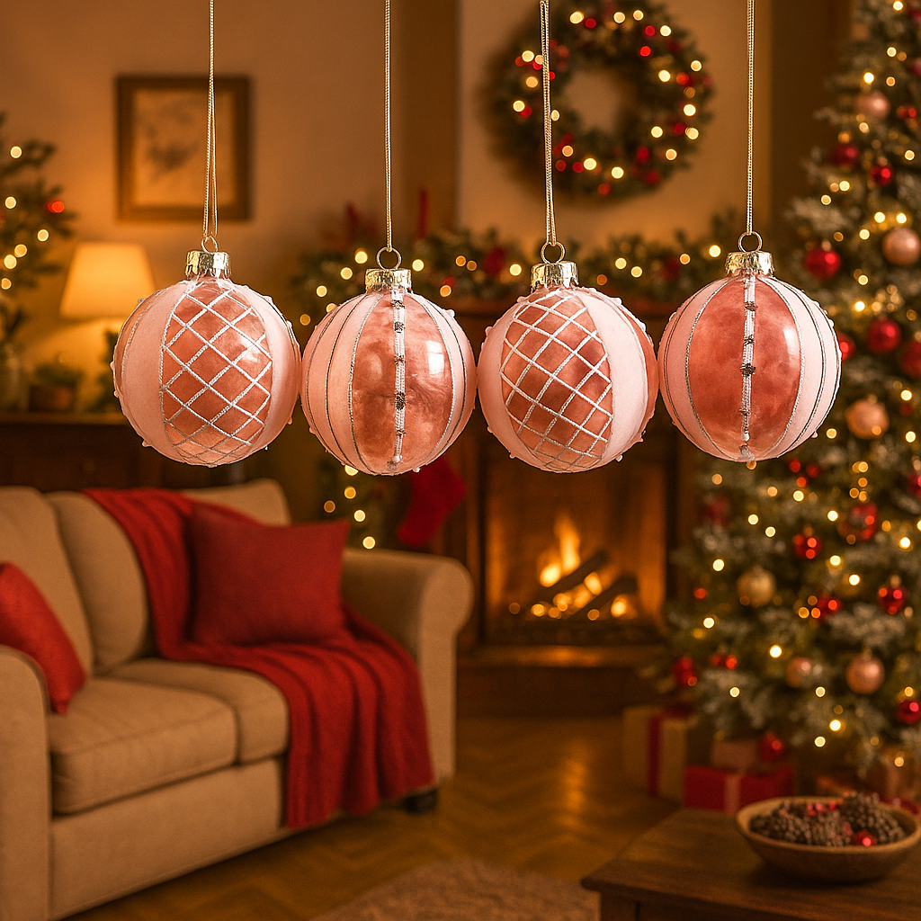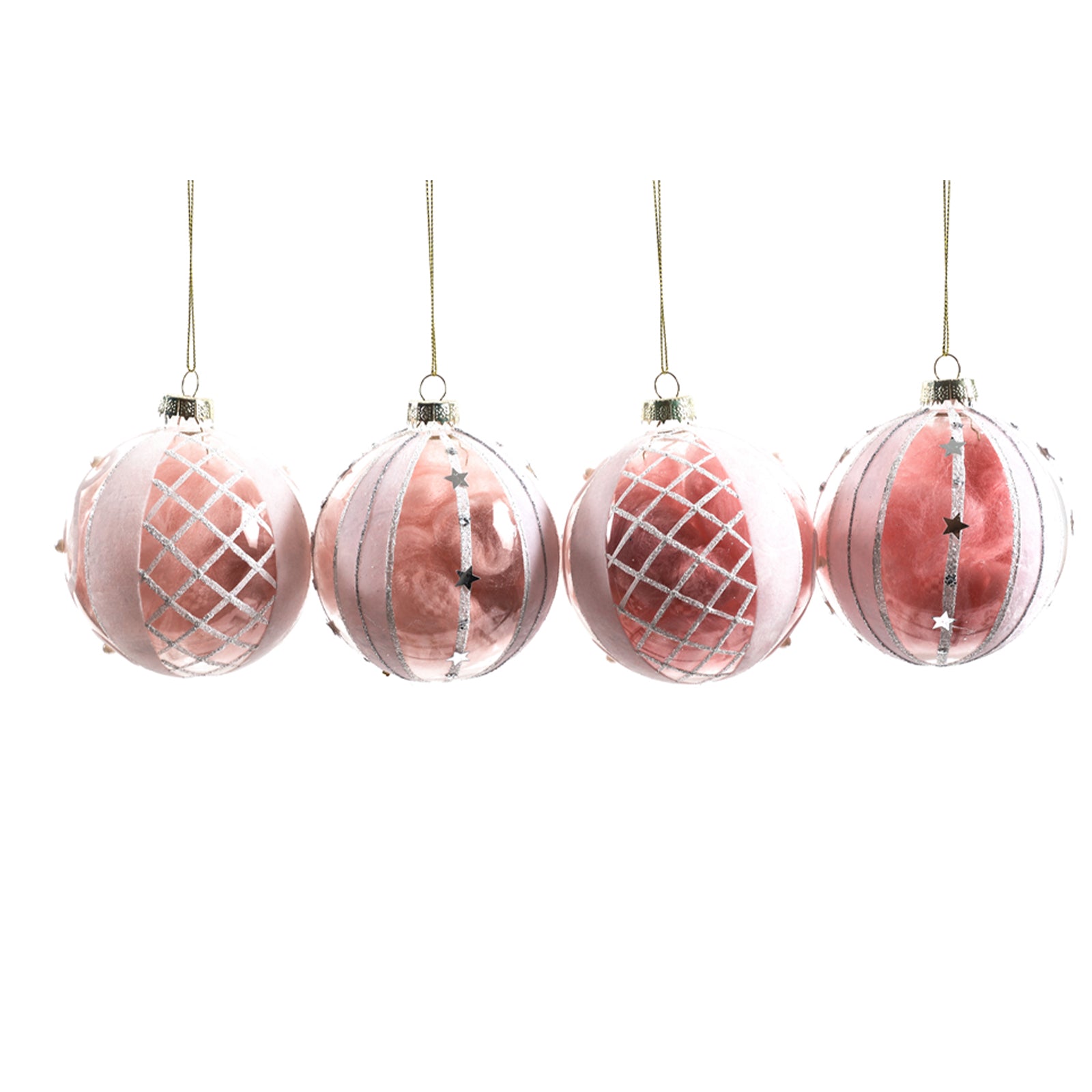 Palline per albero di Natale in vetro decorate Rosa da 10 cm, confezione da 4 pezzi