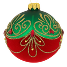 Pallina per albero di Natale verde con uno strato di velluto rosso impreziosito da decorazioni dorate da 10 cm