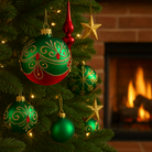 Il suo design ricercato, che unisce il verde tradizionale alla ricchezza del velluto rosso e ai dettagli dorati, la rende un ornamento perfetto per creare un’atmosfera festosa e sofisticata.