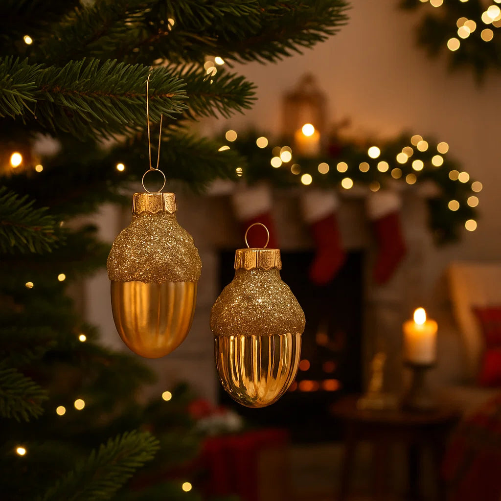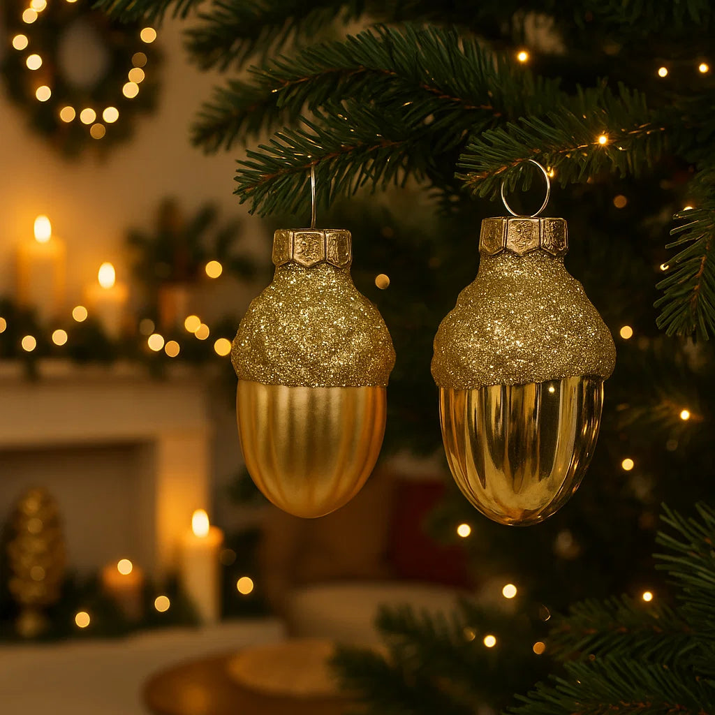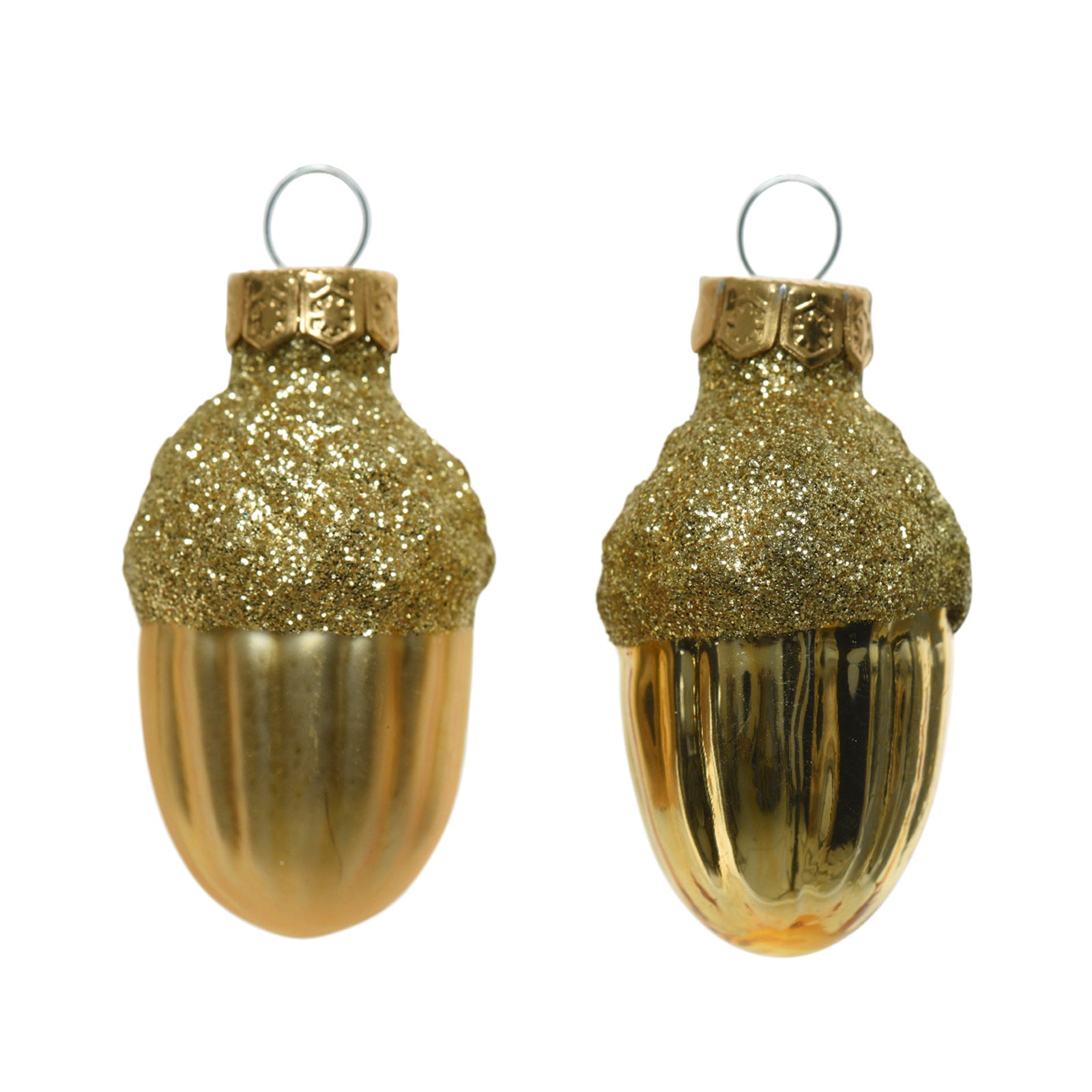 Palline a forma di ghianda in vetro per albero oro, confezione da 12 pezzi