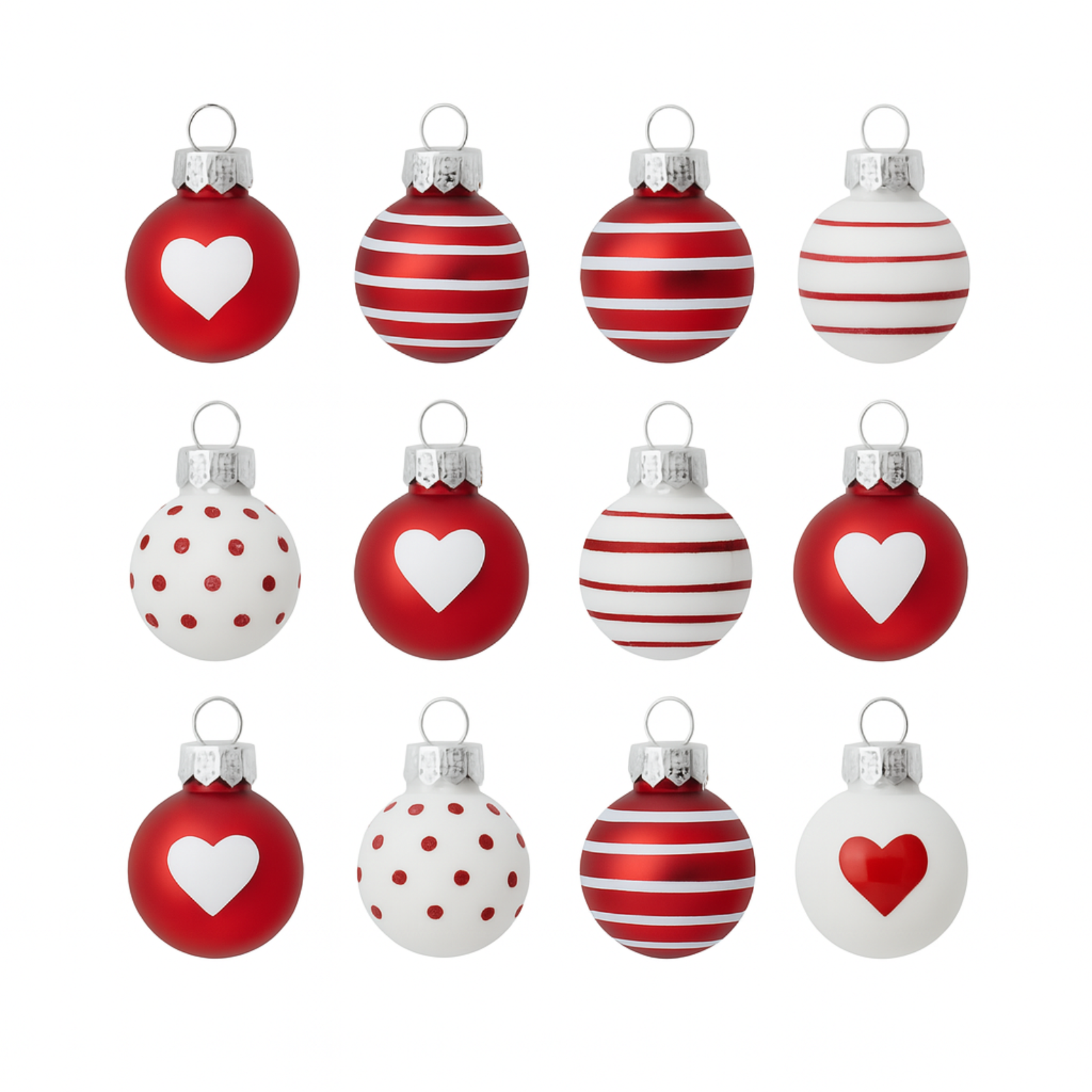 Palline con cuori confezione da 12 pezzi diametro da 3 cm bianche e rosse
