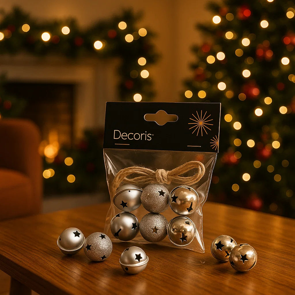 Le palline sono caratterizzate da un aspetto scintillante grazie alla presenza di glitter, che le rende ancora più accattivanti e luminose quando colpite dalla luce. Ogni pallina è dotata di una campanella che produce un suono delicato quando viene mosso o quando l'albero è accarezzato dalla brezza, aggiungendo un tocco sonoro al piacevole aspetto visivo.