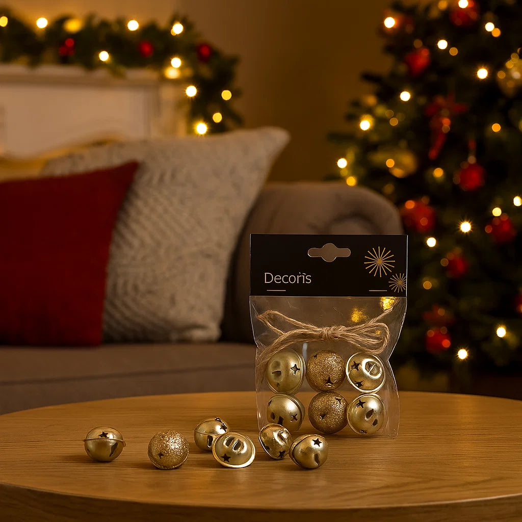 Palline per Albero di Natale con campanella glitterata, in ferro, decorazione da 3 x 3 x 2,5 cm