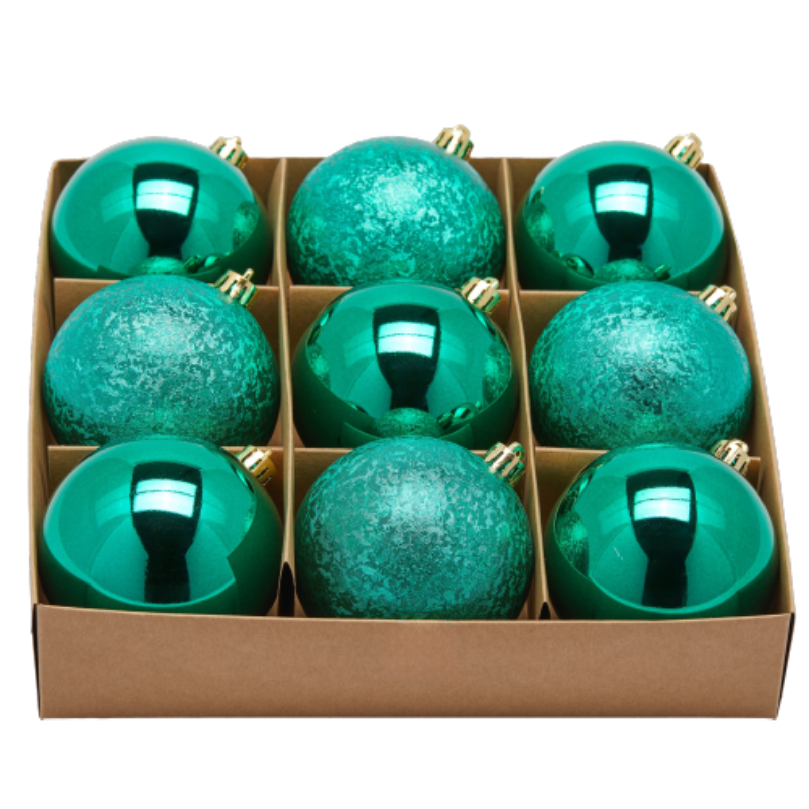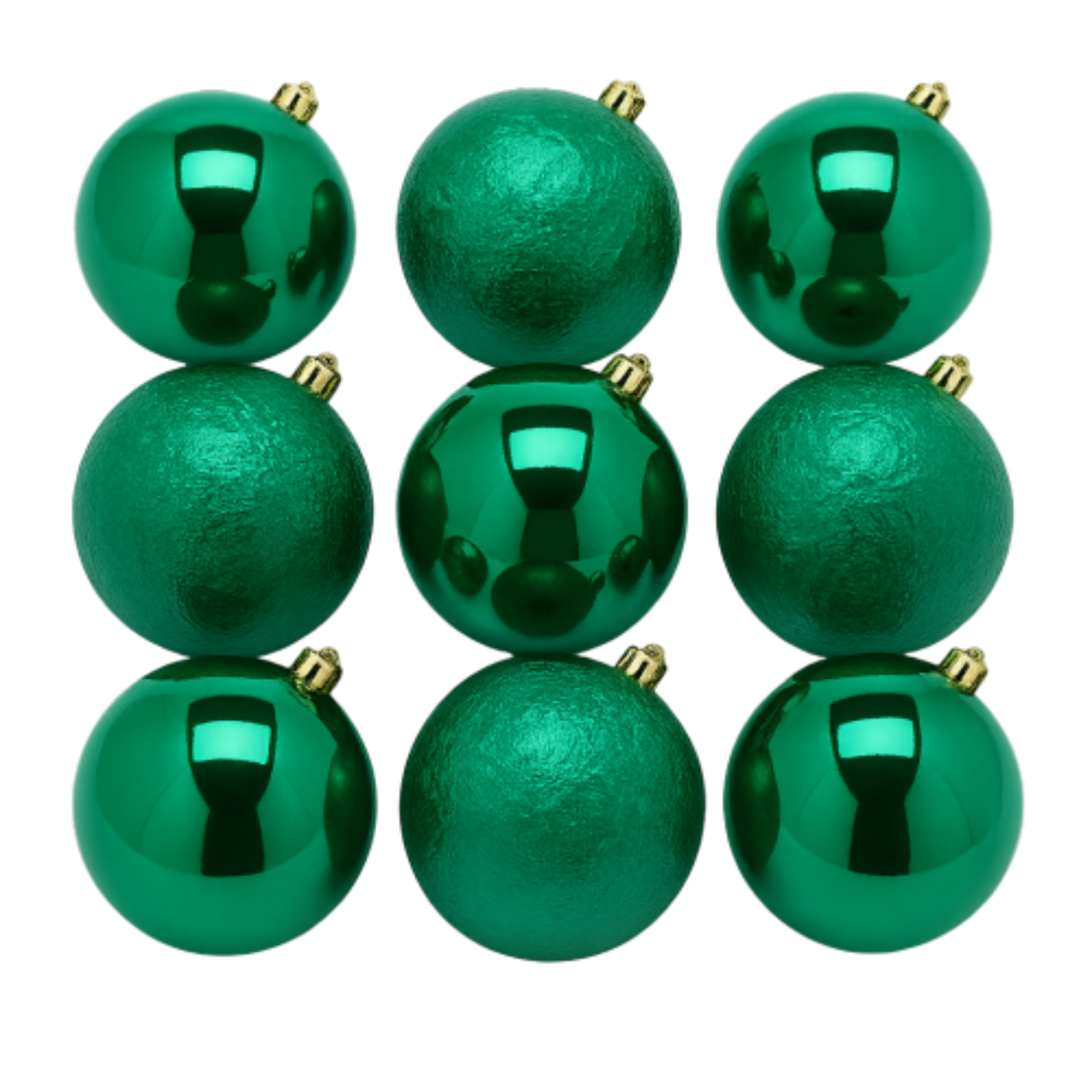 Set con diametri assortiti (8 / 10 cm) per un’alternanza equilibrata di dimensioni sull’albero o nelle ghirlande.