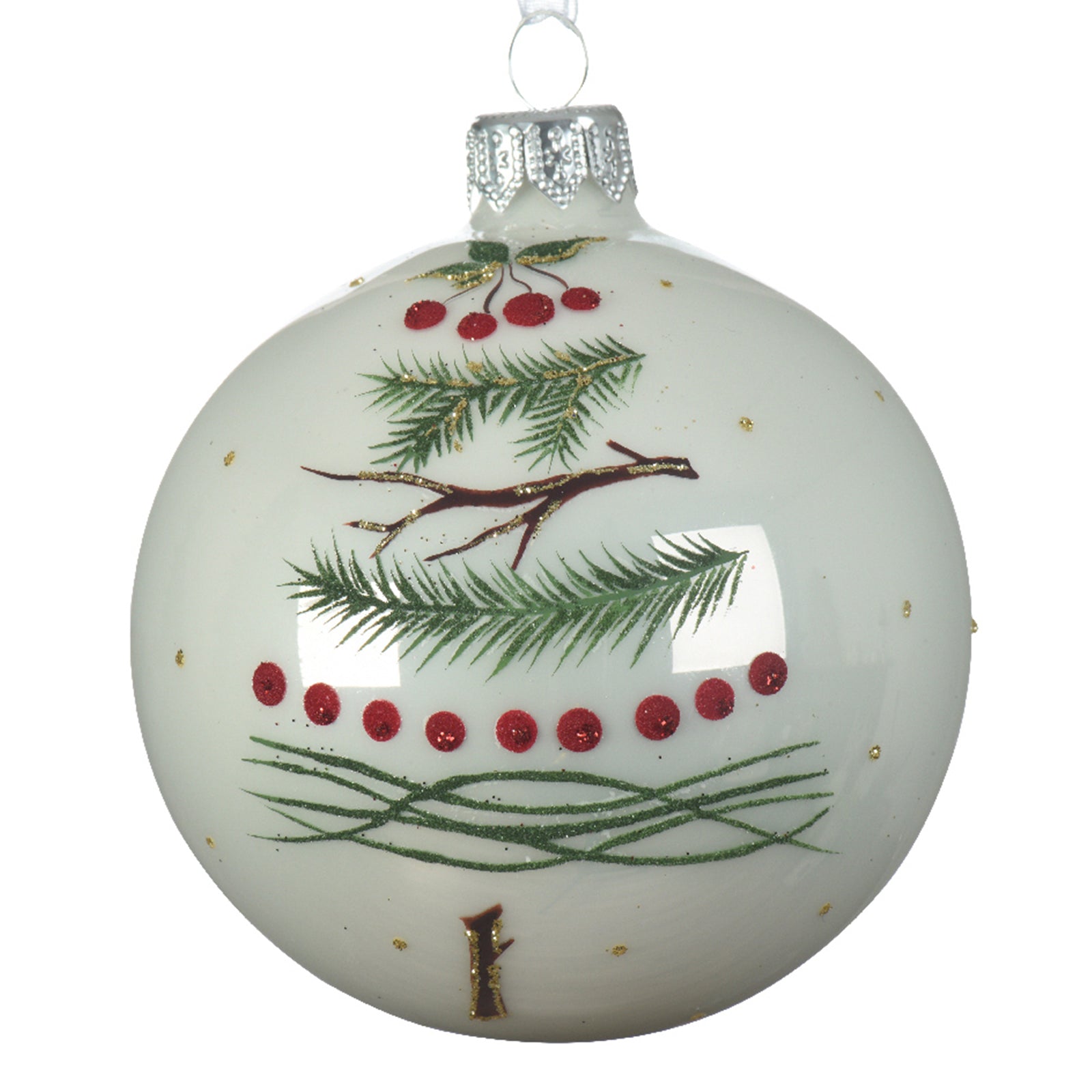 Palline per albero di Natale in vetro color Bianco Inverno con Albero di Natale da 8 cm, confezione da 6 pezzi
