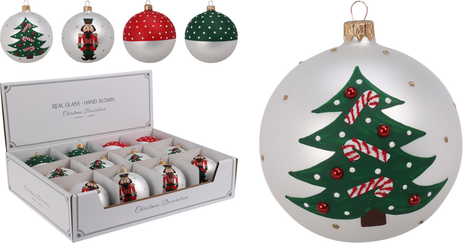 Palline per albero di Natale, in Vetro, con decorazioni, Ø 80 mm, 12 pezzi