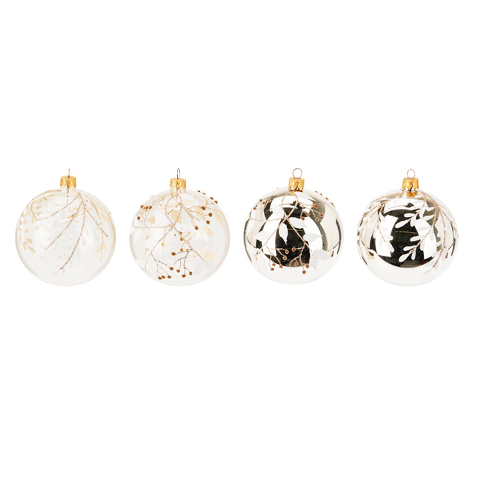 Palline per albero di Natale in vetro decorate con rami glitter Ø 10 cm