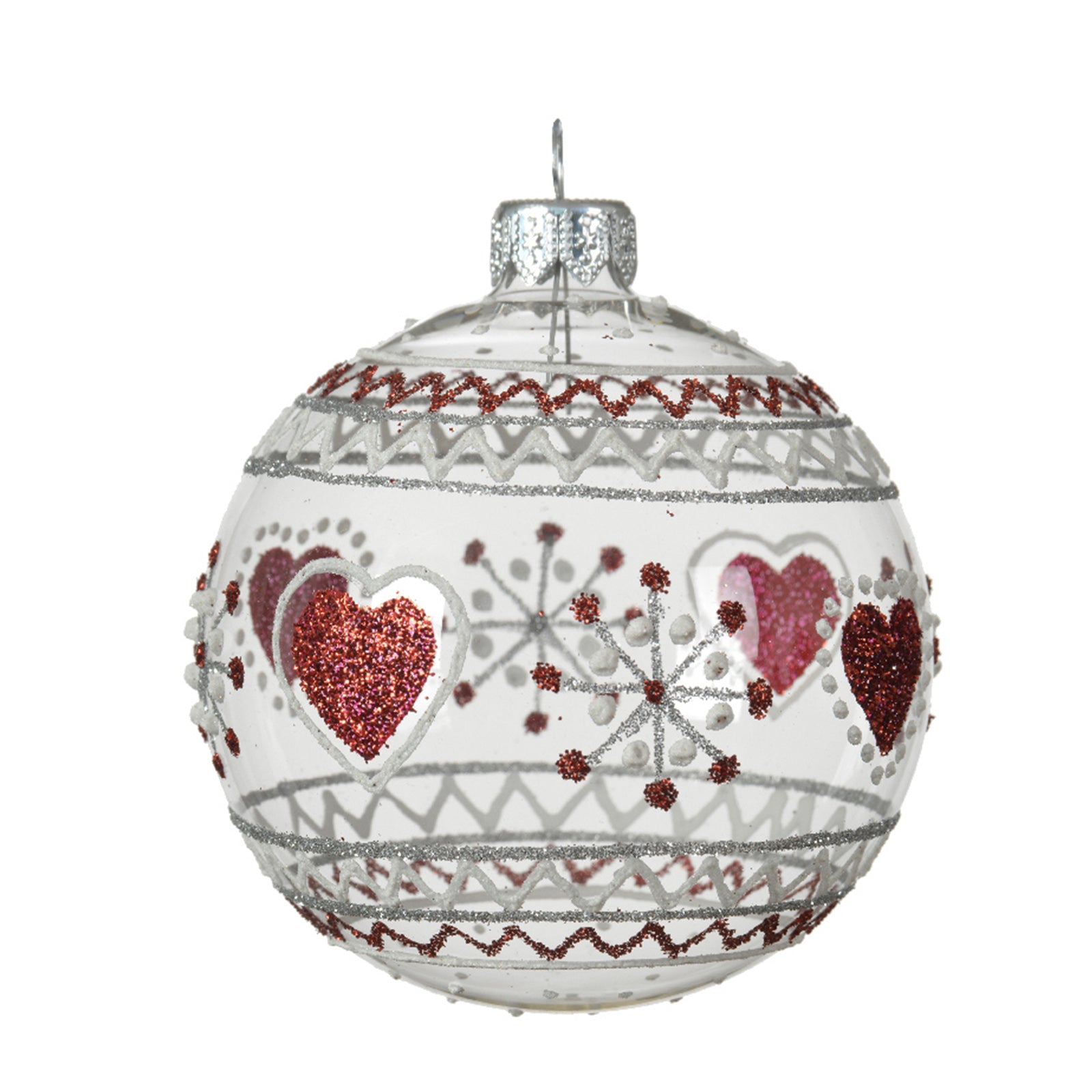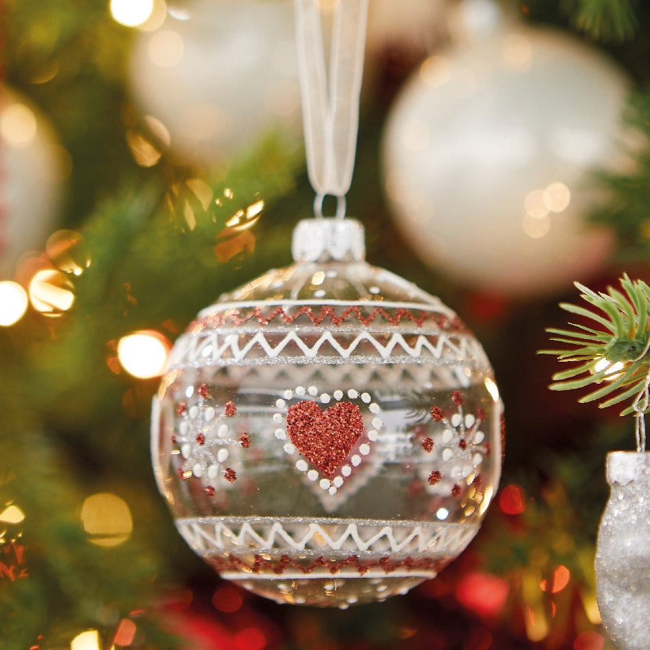 Palline per albero di Natale in vetro decorato rosso e argento da Ø 8 cm
