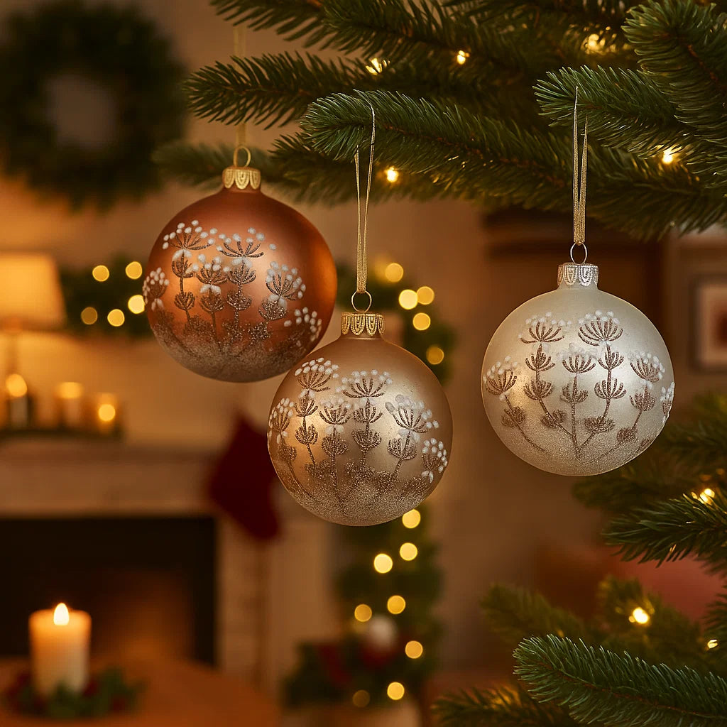 .Palline in vetro lucide con glitter a fantasia ideali per addobbare il vostro Albero di Natale.