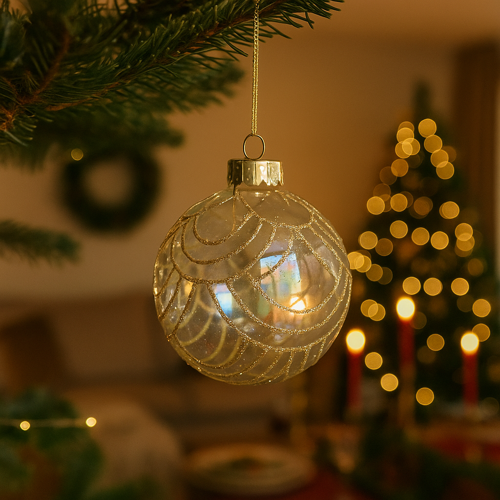 Aggiungi un tocco di eleganza e magia al tuo albero di Natale con le nostre splendide palline in vetro "Prism" iridescente.