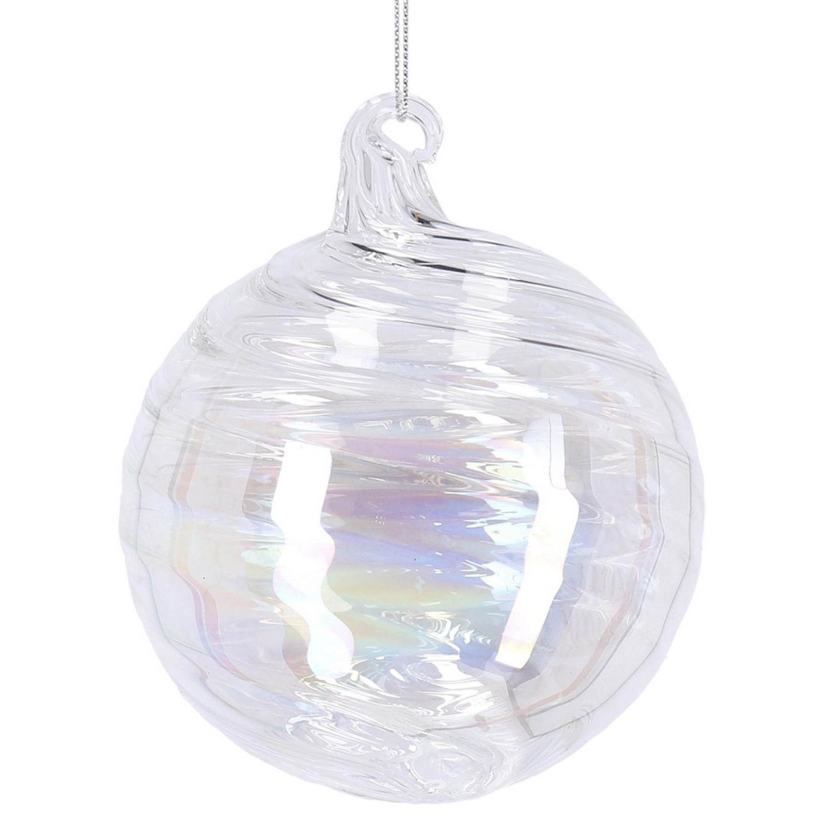 Aggiungi un tocco di eleganza e magia al tuo albero di Natale con le nostre splendide palline in vetro "Spiral" iridescente.