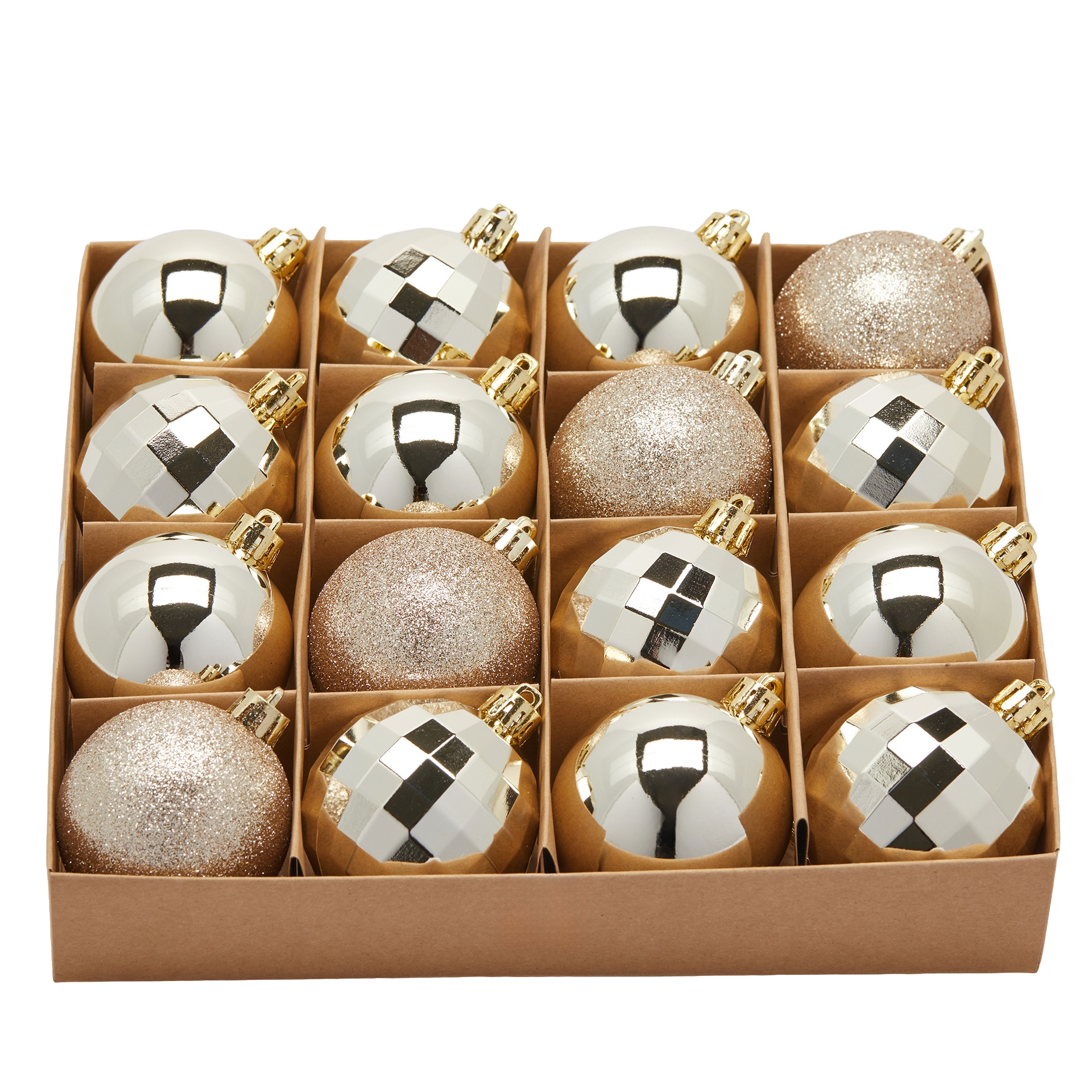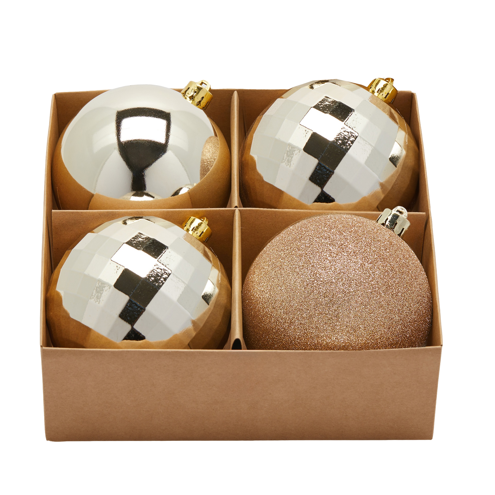 Palline per albero di Natale MirrorMix color Champagne, addobbo natalizio elegante