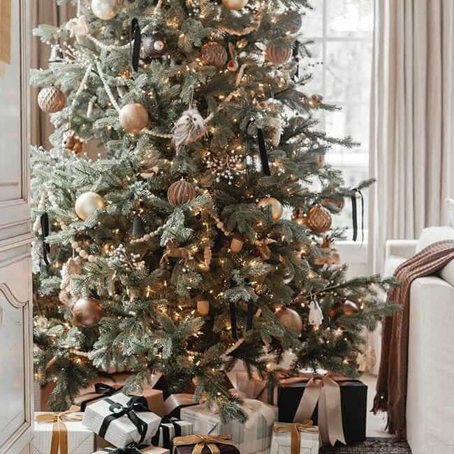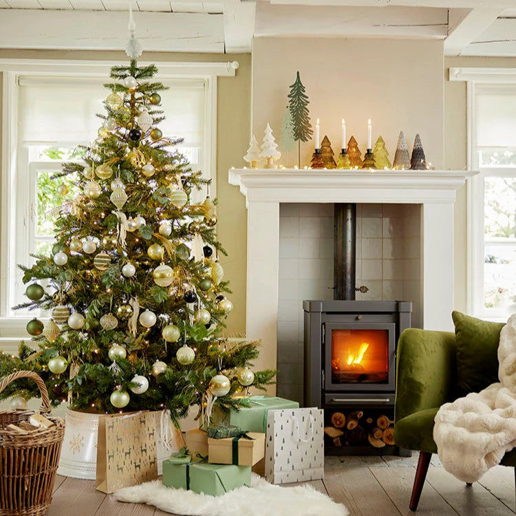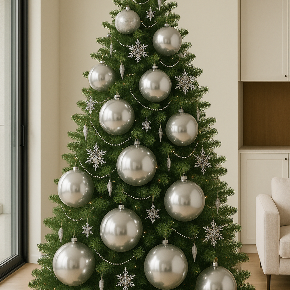 Ogni sfera, leggera e resistente agli urti, è lavorata con precisione: le superfici lucide offrono un’eleganza specchiante, mentre le varianti opache, declinate in sfumature di rosso, oro, argento e verde, donano profondità cromatica; le versioni ricoperte di glitter, infine, catturano i bagliori delle luci circostanti, restituendo un effetto scintillante che anima l’intera composizione.