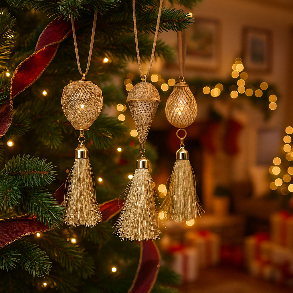 Il colore dorato riflette splendidamente le luci natalizie, rendendo questi pendagli un complemento ideale per ambienti sia classici che contemporanei.
