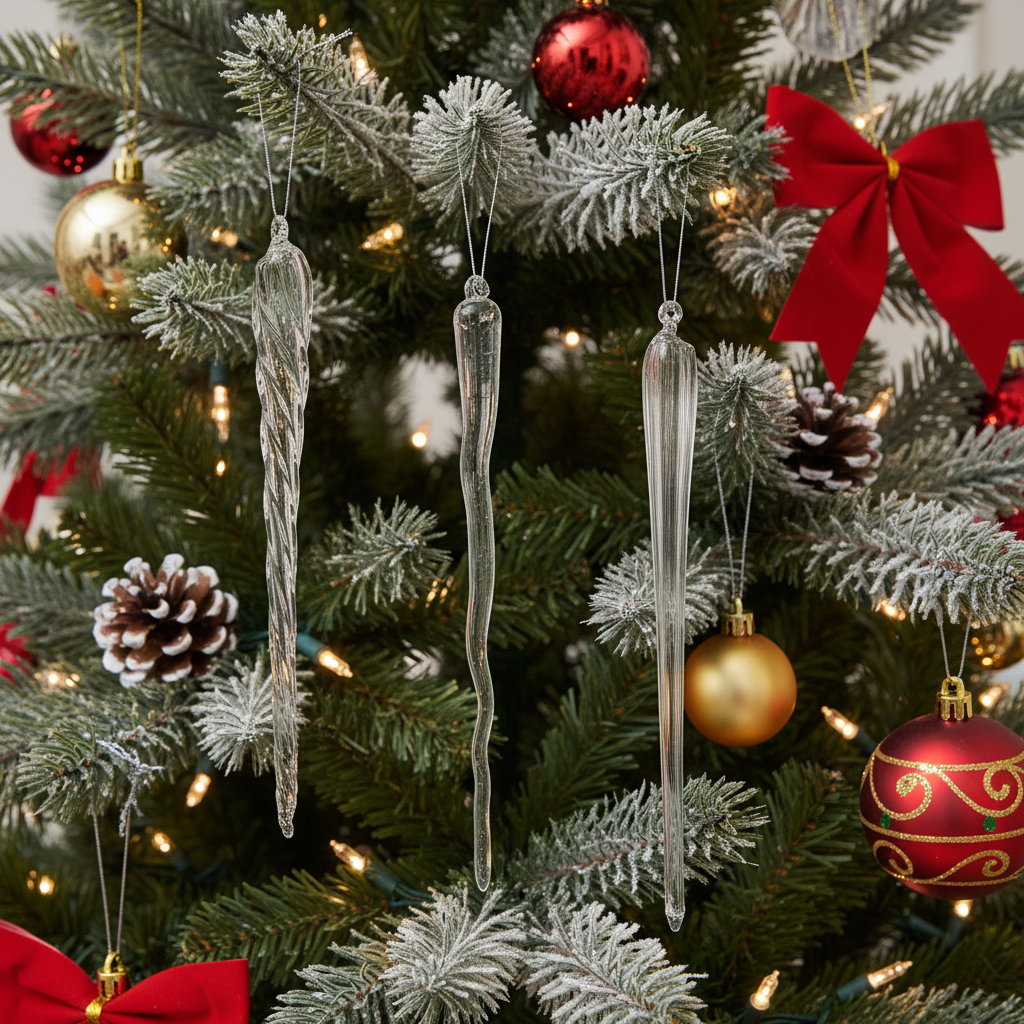 I pendagli in vetro "Icicle" per albero di Natale sono una scelta elegante e raffinata per decorare l'albero durante le festività.