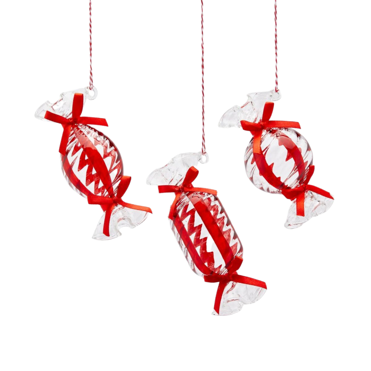 Pendagli per albero di Natale in vetro, caramelle rosse, confezione 3 pezzi, 11.5 cm