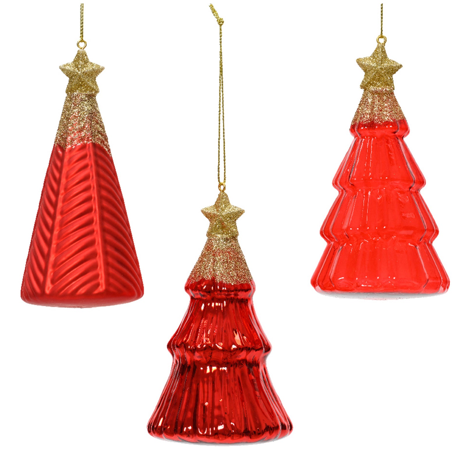 Pendaglio a forma di albero rosso con glitter per albero decorazione natalizia da 13 cm