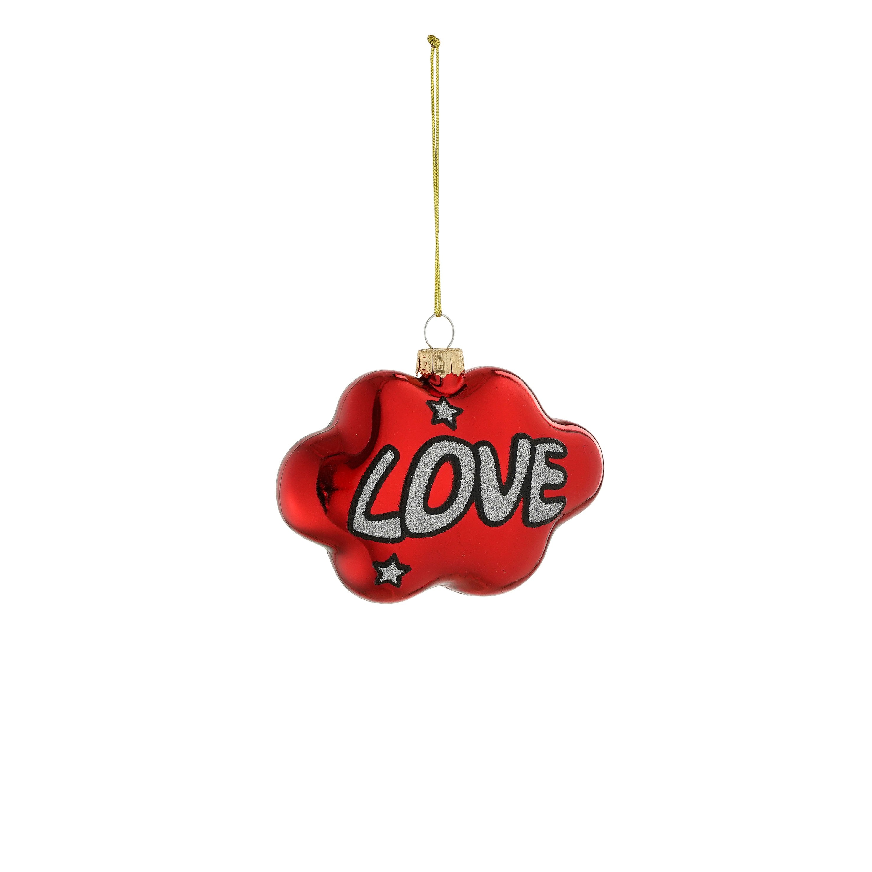 Il pendaglio da discoteca in vetro, alto 7,5 cm, con le scritte "Love" in rosso e "Wow" in oro, è un'aggiunta vivace e scintillante alle tue decorazioni natalizie.