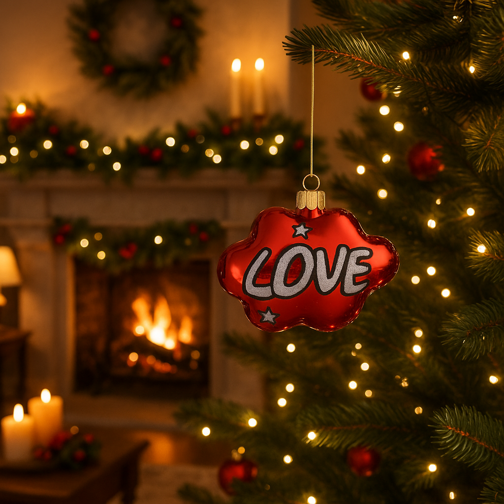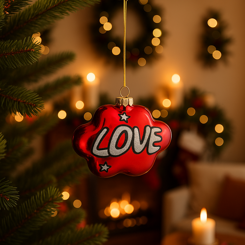 - "Love" in rosso, che porta un messaggio romantico e festoso.